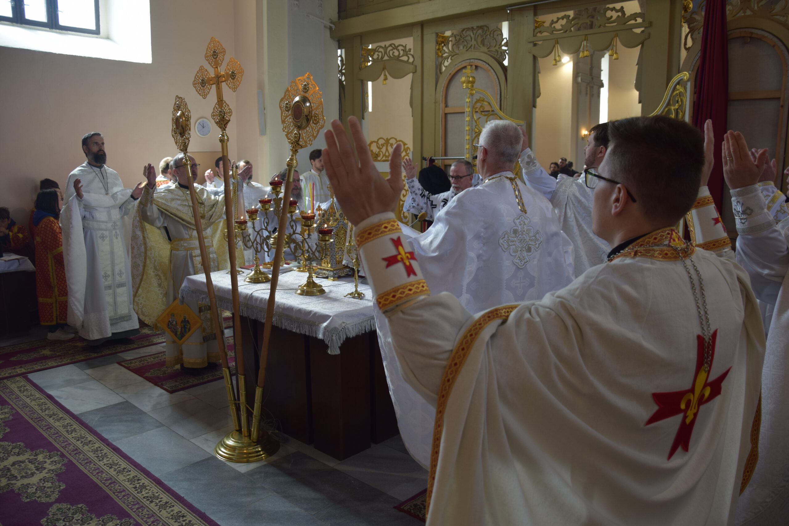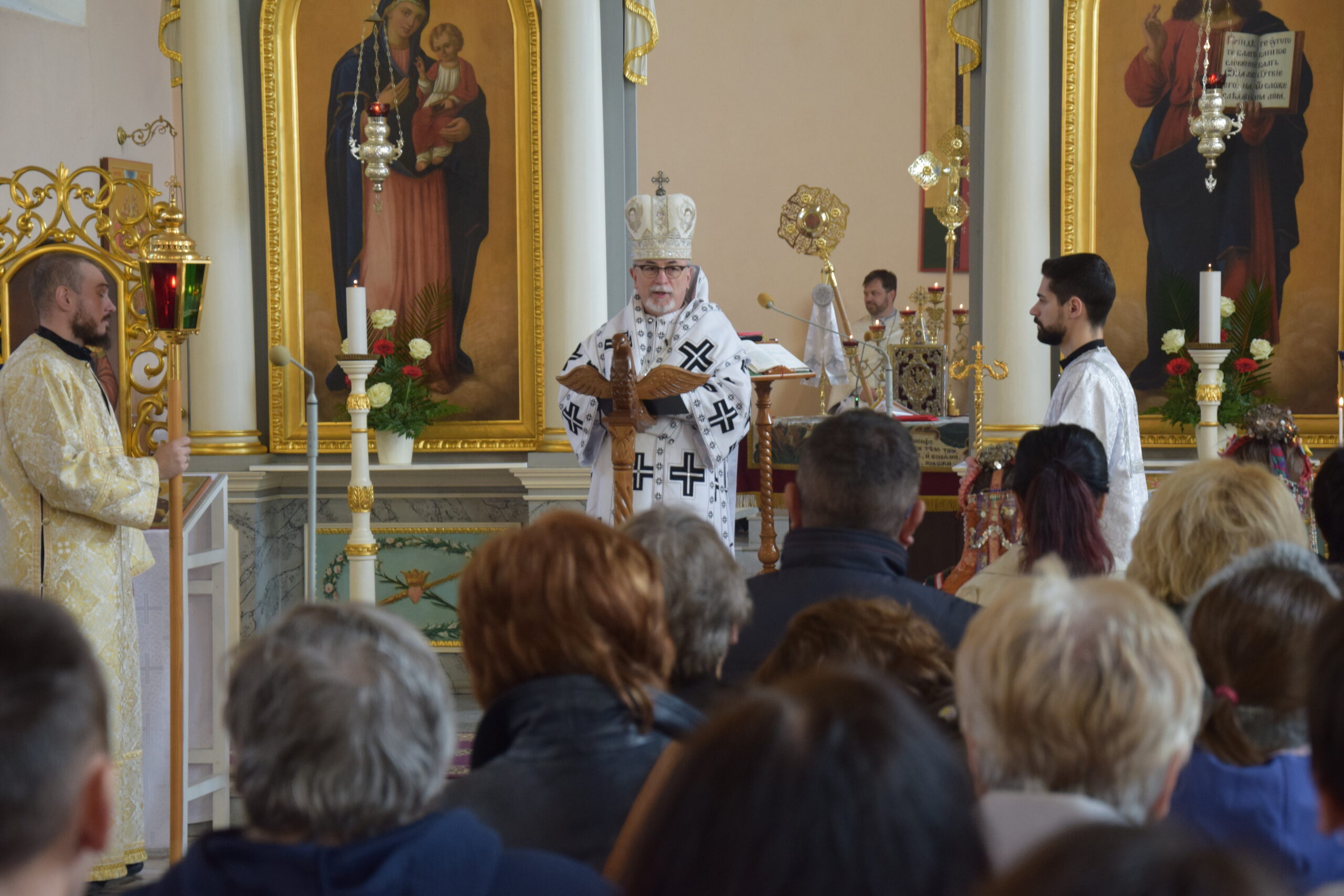 Aj v nedeľu 26. apríla 2026 sa tu na archijerejskej svätej liturgii zišlo viac ako tristo veriacich z našich spišských farností so svojimi kňazmi, aby vedení svojim duchovným pastierom otcom arcibiskupom Cyrilom, mohli načerpať zo stola Božieho slova a eucharistie. Vladyka v homílii zdôraznil viacero aspektov zo života patróna chrámu ako napríklad to, že bol kresťanom vo vysokej pozícii svetskej moci, pričom si zachoval svoju hlbokú vieru a lásku k Bohu a nesklonil sa pred mocou pohanského vládcu. Ilustrujúc legendy z jeho života si veriaci mohli zodpovedať na otázku, s akým duchovným drakom prebieha ich duchovný zápas, ktoré sú to neresti a slabosti, na ktoré je potrebné zacieliť a prebodnúť ich kopijou.